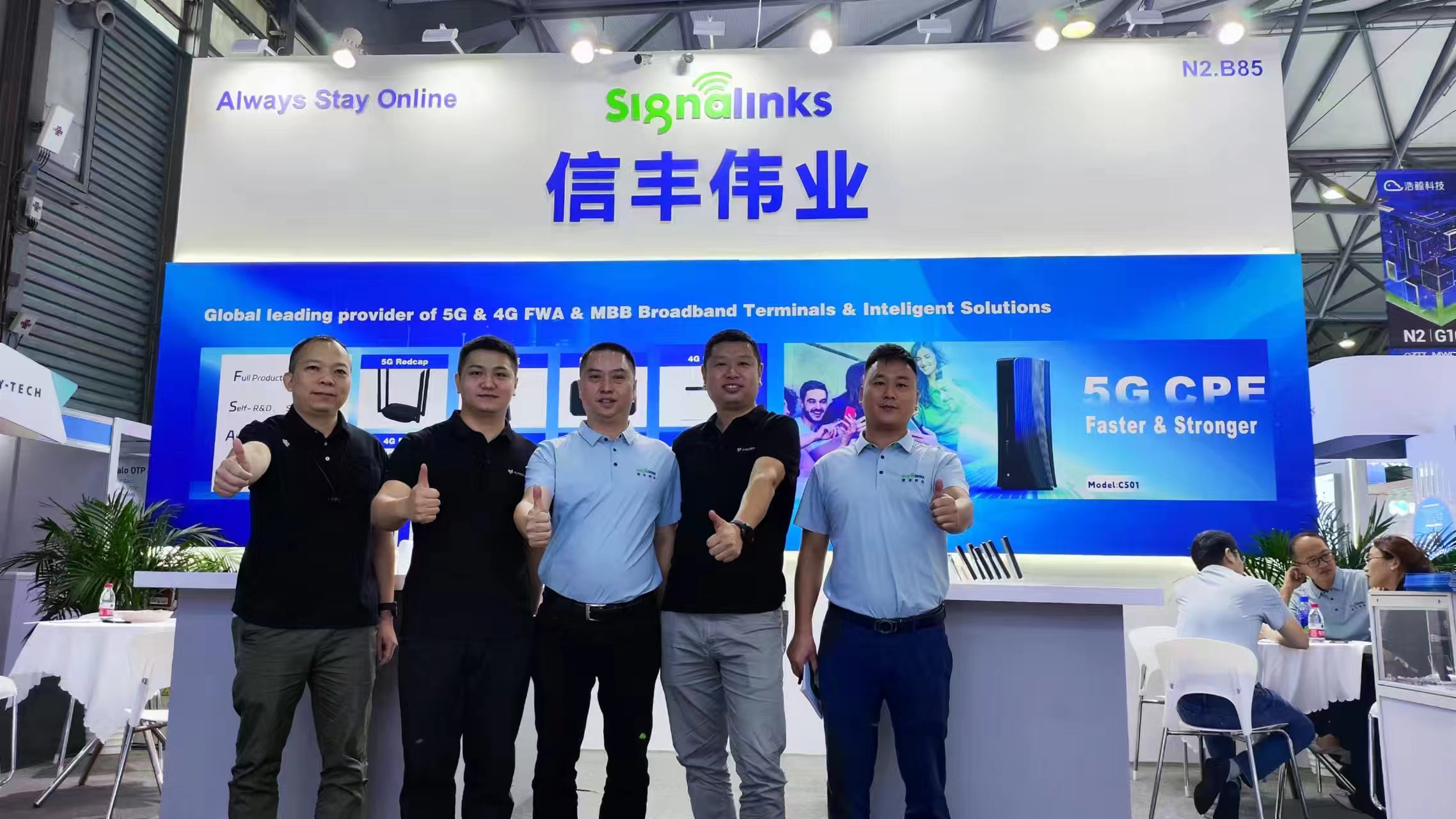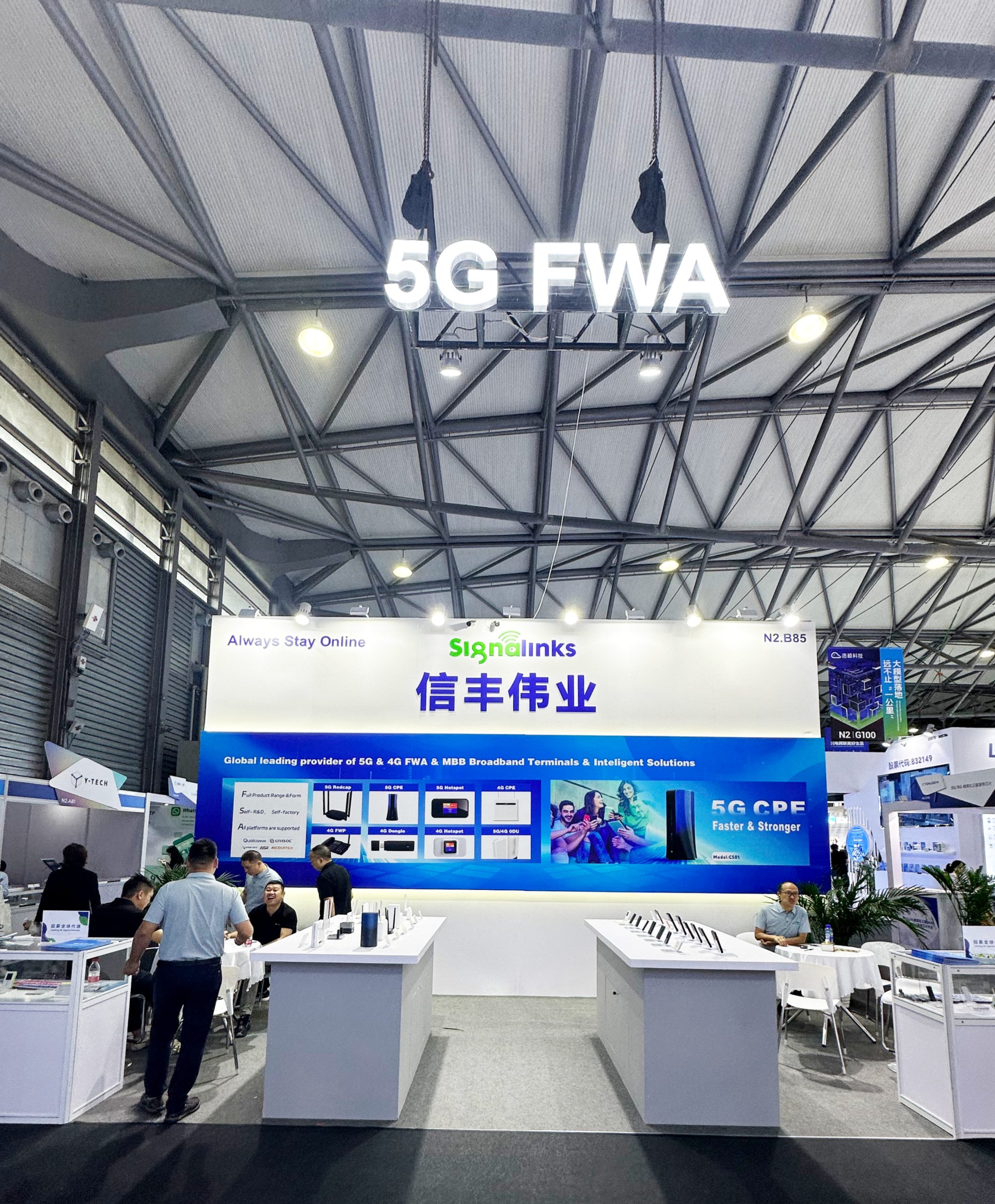 As an important exhibitor of this conference, Signalinks brought many digital intelligent terminal products to the N2-B85 booth of Shanghai New International Expo Center. Adhering to years of technology precipitation, Signalinks’ wireless terminal product matrix is becoming more and more perfect, which has covered many fields such as 5G/4G UFi, MiFi, CPE, Module, Repeater and so on.